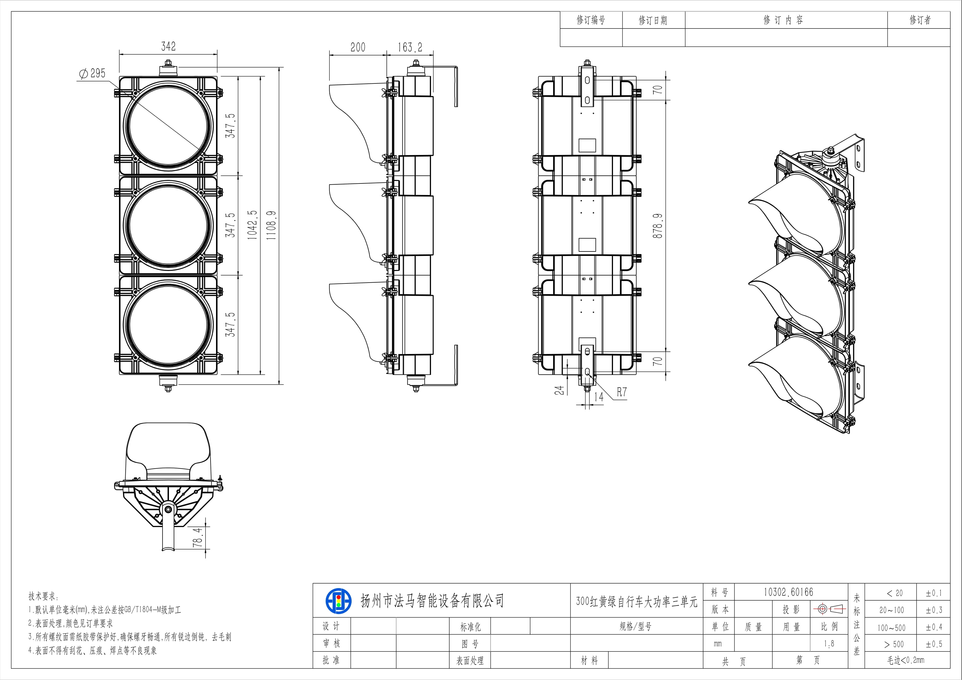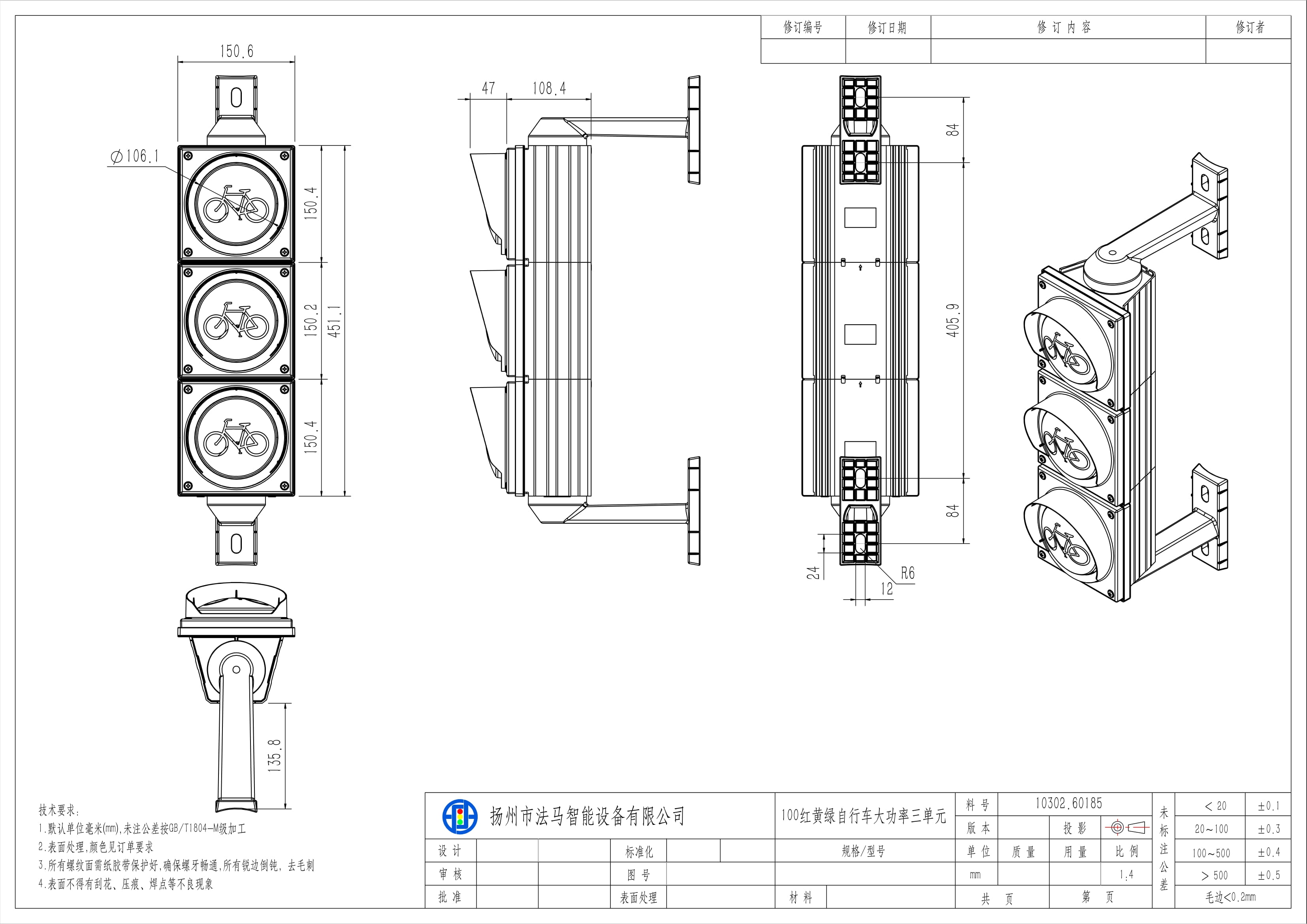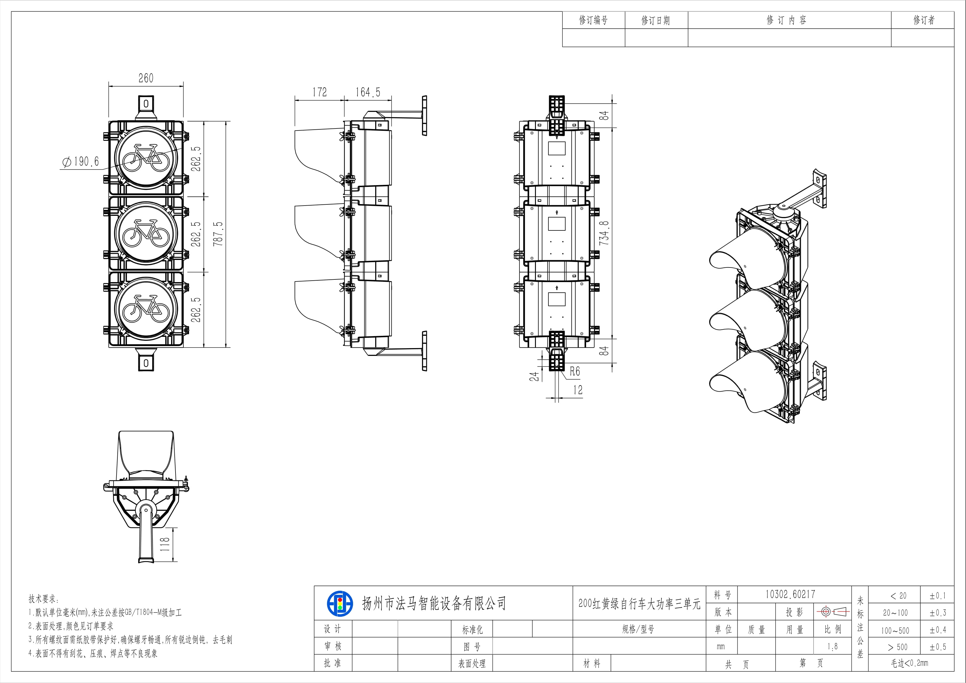 Die High Flux Fahrradampel besteht aus drei Einheiten. Der Leuchtenkern besteht aus großformatigen Lichtquellen, einem dreischichtigen optischen Linsensystem, Leistungsmodulen, einer Leuchtenschale und externen Wärmeableitungskomponenten. Der optische Mechanismus arbeitet mit einer dreischichtigen optischen Verarbeitung, um die Lichtausbeute zu erhöhen, das von der Lichtquelle emittierte Punktlicht zu streuen und neu zu fokussieren und so eine gleichmäßige Flächenlichtabgabe zu erzeugen. Die Ampel ist für ampelgeregelte Kreuzungen mit Fahrradwegen geeignet.