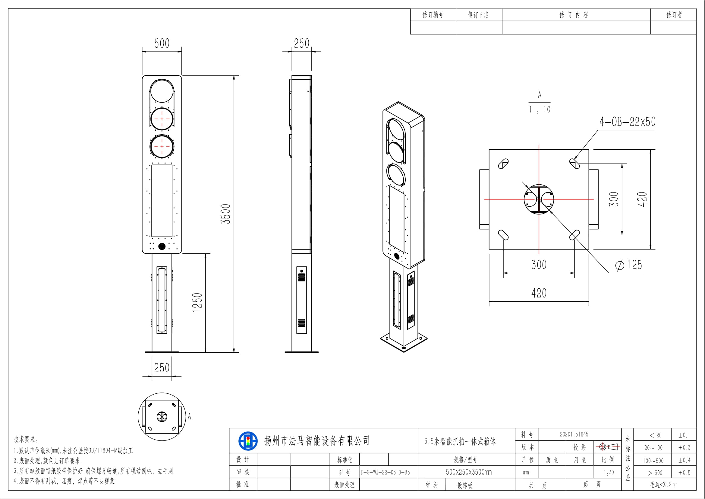 | Gesamtabmessungen | L × B × H: 500 × 250 × 3500 mm |